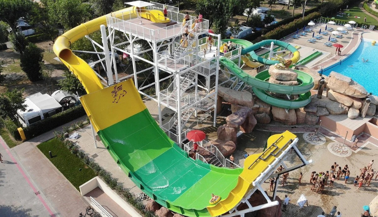 Dit kindvriendelijke vakantiepark ligt direct aan het breedste zandstrand van de regio en het strand loopt geleidelijk af in zee. Ideaal voor gezinnen met kinderen. De camping beschikt over talloze voorzieningen, waaronder een schitterend waterpark 'Aquamarina' met golfslagbad, diverse glijbanen en een speelkasteel met ontelbare fonteinen. Pas op want de reusachtige emmer is bijna vol!