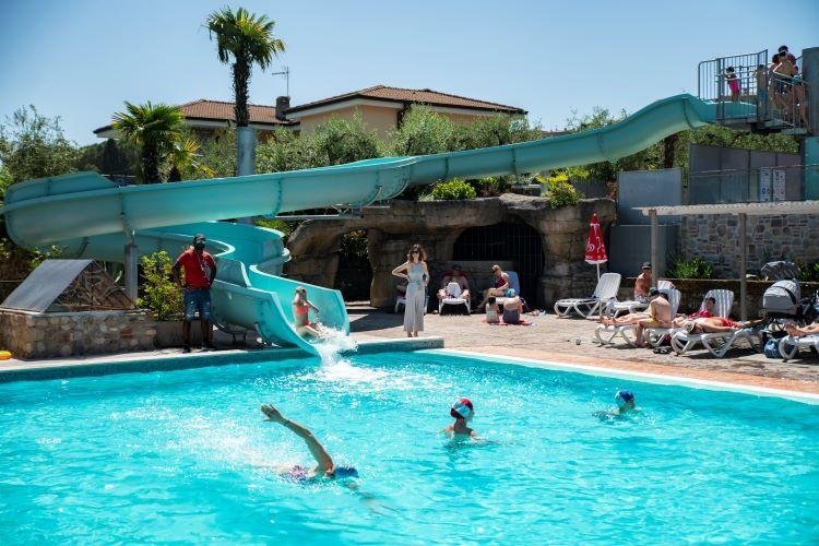 •2 ruime zwembaden met uitzicht op het Gardameer, glijbaan van 50 meter