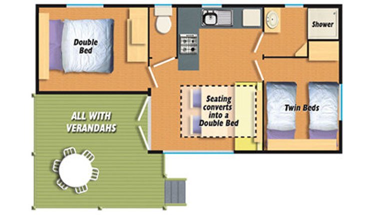 Slaapkamers: deze fraaie mobilehome heeft maar liefst 3 slaapkamers en is geschikt voor max. 8 personen.